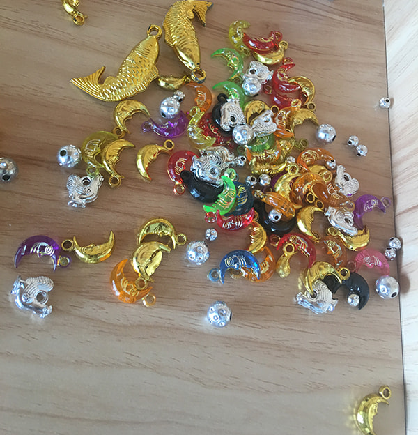 • Plastikkunstwerke wie Weihnachtskugel, Plastikperlen.